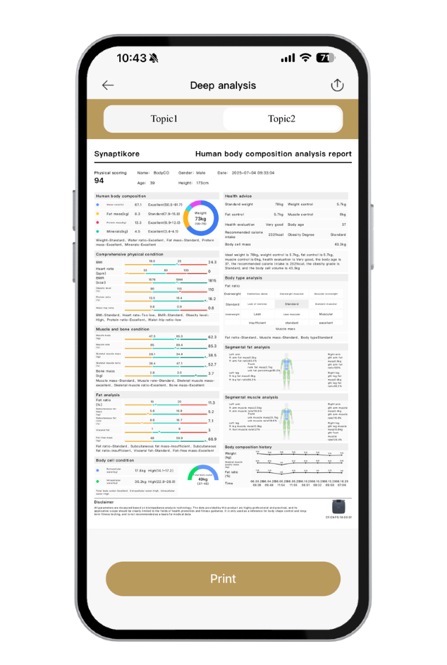 يحسب BodyCO نسبة الدهون بدقة عالية، بما في ذلك الدهون الحشوية والدهون تحت الجلد، مما يساعدك على التمييز بين التقدم الصحي وتغيرات الوزن غير المرغوب فيها. سواء كنت تُقلل الدهون أو تحافظ على توازنك، فإنه يُتيح لك خيارات نمط حياة أفضل.